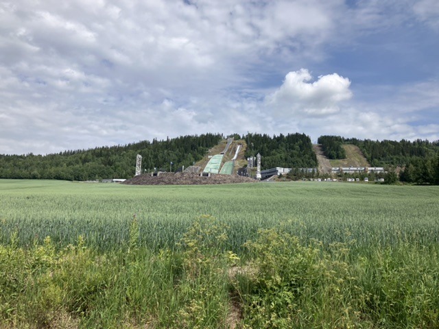 Daarna weer hele stukken over asfalt, en kom ik uit in Lillehammer, ik had het vermoeden al dat ik in skigebied rondreed. De waarschuwingsborden voor langlaufers staan al langs de weg. Toevallig komiek ook langs de skischansen, dus snel even een fotootje en weer door. Een mooie lange weg over asfalt deze keer. Toch is het hier goed opletten want er lopen allerkleinste dieren over de weg. De ene keer schapen dan weer koeien. Bijtijds de snelheid er uit en rustig langs het beesten volk zodat ze geen gekke dingen gaan doen en voor de motor springen. Gelukkig was er geen één levensmoe.