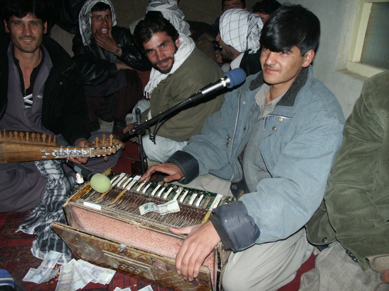 Na de maaltijd zijn we naar het feest gegaan. Natuurlijk direct veel aandacht voor mij van alle aanwezigen, ben per slot toch een buitenlander en krijg een ere plaats op het podium bij de muziek. Ik vraag zo eens waar het bruidspaar eigenlijk is, maar die blijken er niet te zijn. Maakt voor het feest natuurlijk niet uit, alleen waar zijn de vrouwen? Tja, die hebben elders hun eigen feestje, dit is het feest voor de mannen. Het hele dorp is er voor uitgelopen en het feest gaat tot wel half tien door. Dan is het plotseling afgelopen en zie je de een na de ander vertrekken. Ook wij stappen op en bij Azimullah hebben de vrouwen de eetkamer inmiddels omgetoverd tot slaapkamer. Er zit ook weinig anders meer op dan te gaan slapen, maar eigenlijk ook wel lekker.