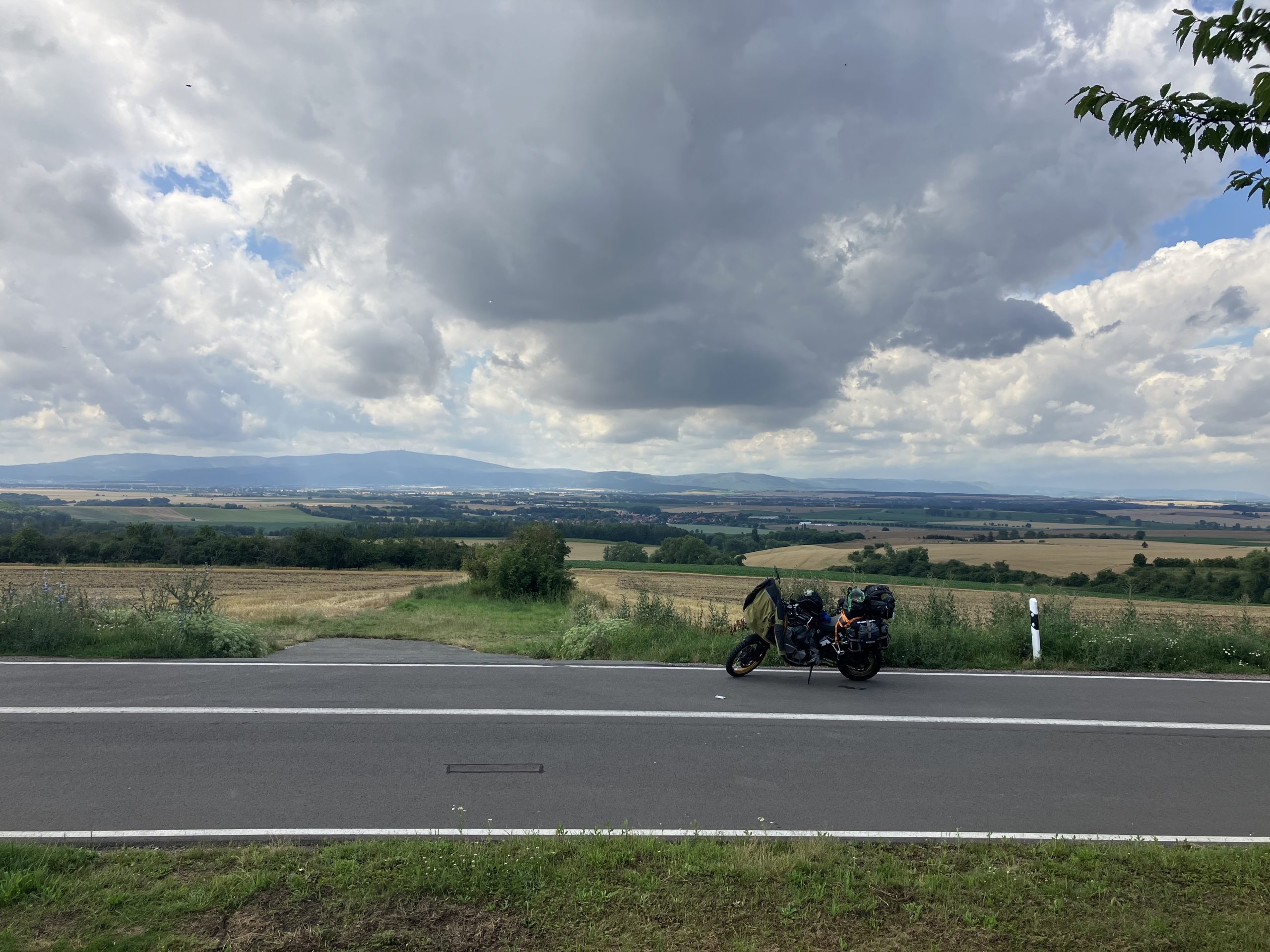 p tijd opgestaan, en om 10 uur weer op de motor gestapt richting Dresden. Omdat ik weiger de snelweg te rijden wordt het een stevig stukje. Het wordt een rit met up’s en downs. Fantastisch mooie stukken afgewisseld met lelijke doorgaande routes, maar wat wel heel erg irritant was waren de steden. Ik had een route gepland met als voorwaarde veel bochten en geen steden. Uiteindelijk kom ik in de warmte, 28 graden, dwars door diverse steden waaronder Leipzig in de middag spits. Daar wordt je echt niet blij van. Maar gelukkig na Leipzig weer door de bossen en langs uitgestrekte graanvelden, dat maakt mijn hoofd wel weer leeg.