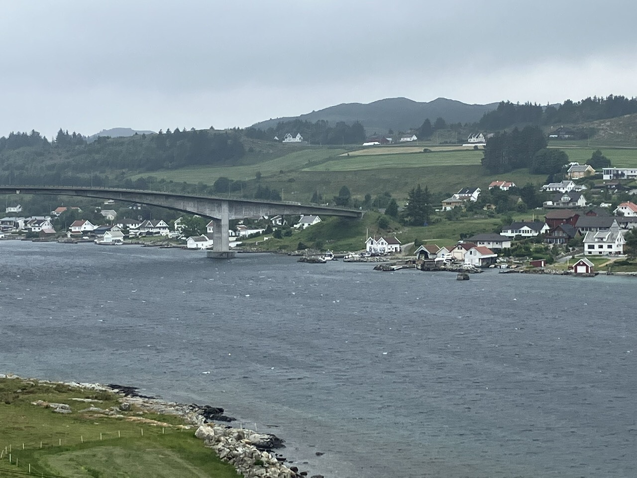 Ik rij over een doorgaande weg langs het fjord en door tunnels die ik niet had verwacht, dacht dat ik over een brug zou gaan. Vervolgens een Ferry, en een half uur later aan de overkant verbaas ik me nog steeds want die had ik helemaal niet verwacht. Ik rij lekker door en geniet an de omgeving.