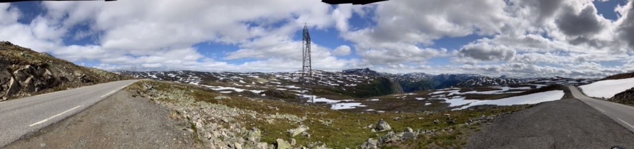 Al vroeg in de middag kijk ik uit naar een kampeerplekje in de buurt. Ze zouden er moeten zijn, maar staan allemaal al vol. Dus ga ik maar door en kom in een werkelijk fantastische omgeving terecht, de bergen in, haarspeldbochten door en steeds hoger. Ik kom tot de kam, helemaal aan de top rij ik langs de sneeuw. Soms nog hele muren en verder een kaal landschap, hier groeit geen boom of struik meer, alleen nog wat mos zo hier en daar. Zo ontzettend mooi en, zo ver als je kunt kijken, een ruig landschap. Alleen Afghanistan staat in mijn herinnering als nog ruiger, maar daar waren in de bergen ook geen geasfalteerde wegen. Eigenlijk wil ik hier wel mijn tentje op zetten, maar er wil geen haring de grond in. Eigenlijk is het ook wel wat frisjes zo tussen de sneeuw zonder enige beschutting tegen de wind.