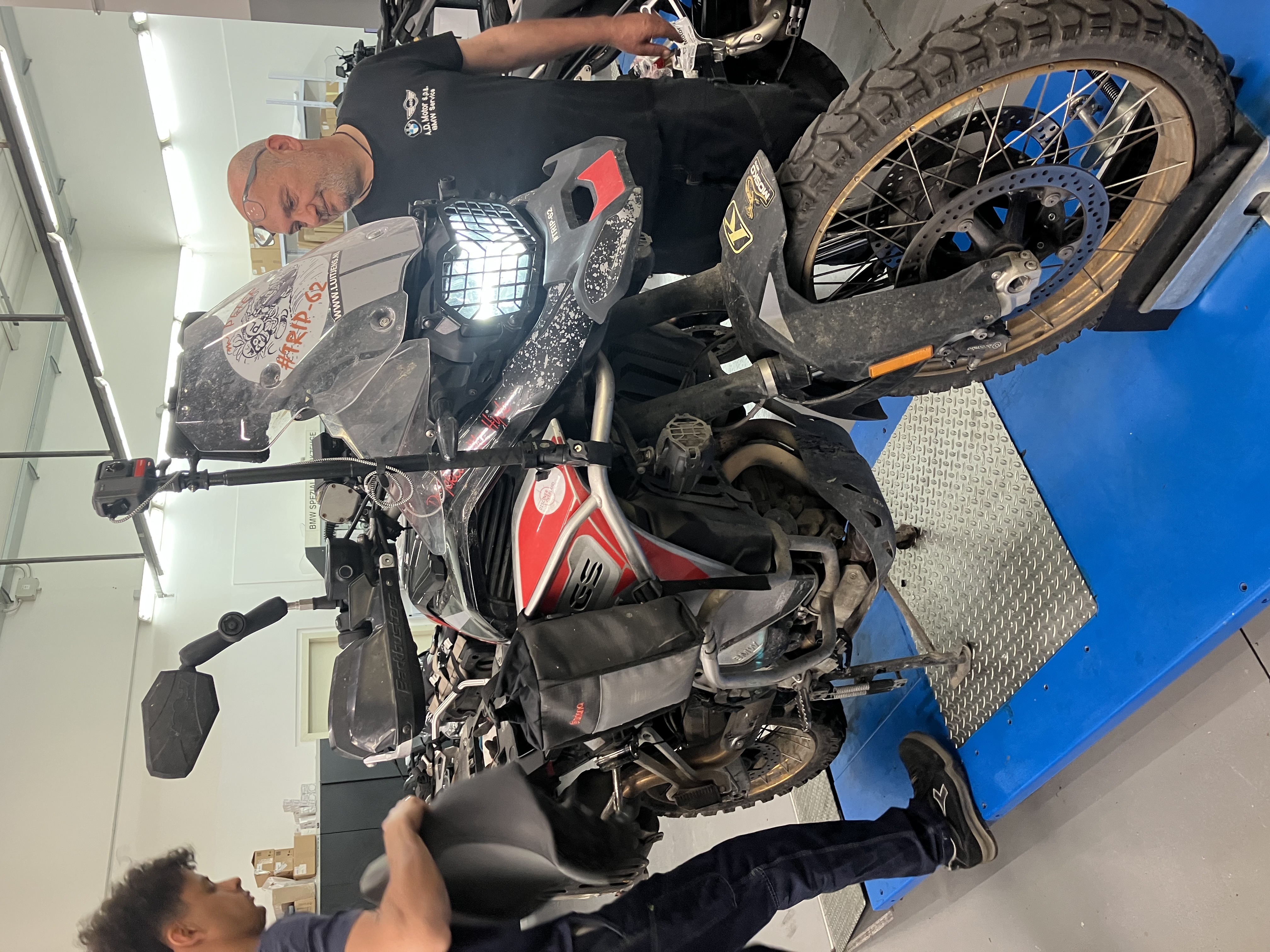 Die hebben ze niet, en bestellen duurt 2 dagen. Ik kijk enigszins teleurgesteld, maar dan komt er een monteur met een super goed voorstel: we halen hem van een andere motor af en bouwen hem dan op de mijne.