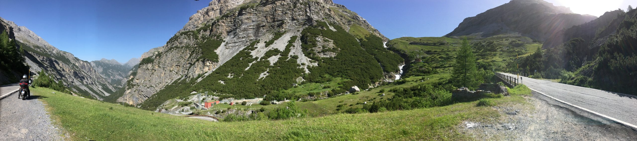 De afgelopen dagen heb ik al heel veel haarspeldbochten gereden en als ik deze pas daar mee vergelijk dan valt het hier eigenlijk wel mee. Ondanks alle bagage gaat het best soepel hier. Er zijn wel zwaardere bochten geweest als ik die met deze vergelijk. Een beginnende motorrijder zou ik toch willen adviseren eerst wat meer oefenen in de Ardennen voordat je de Alpen in gaat.