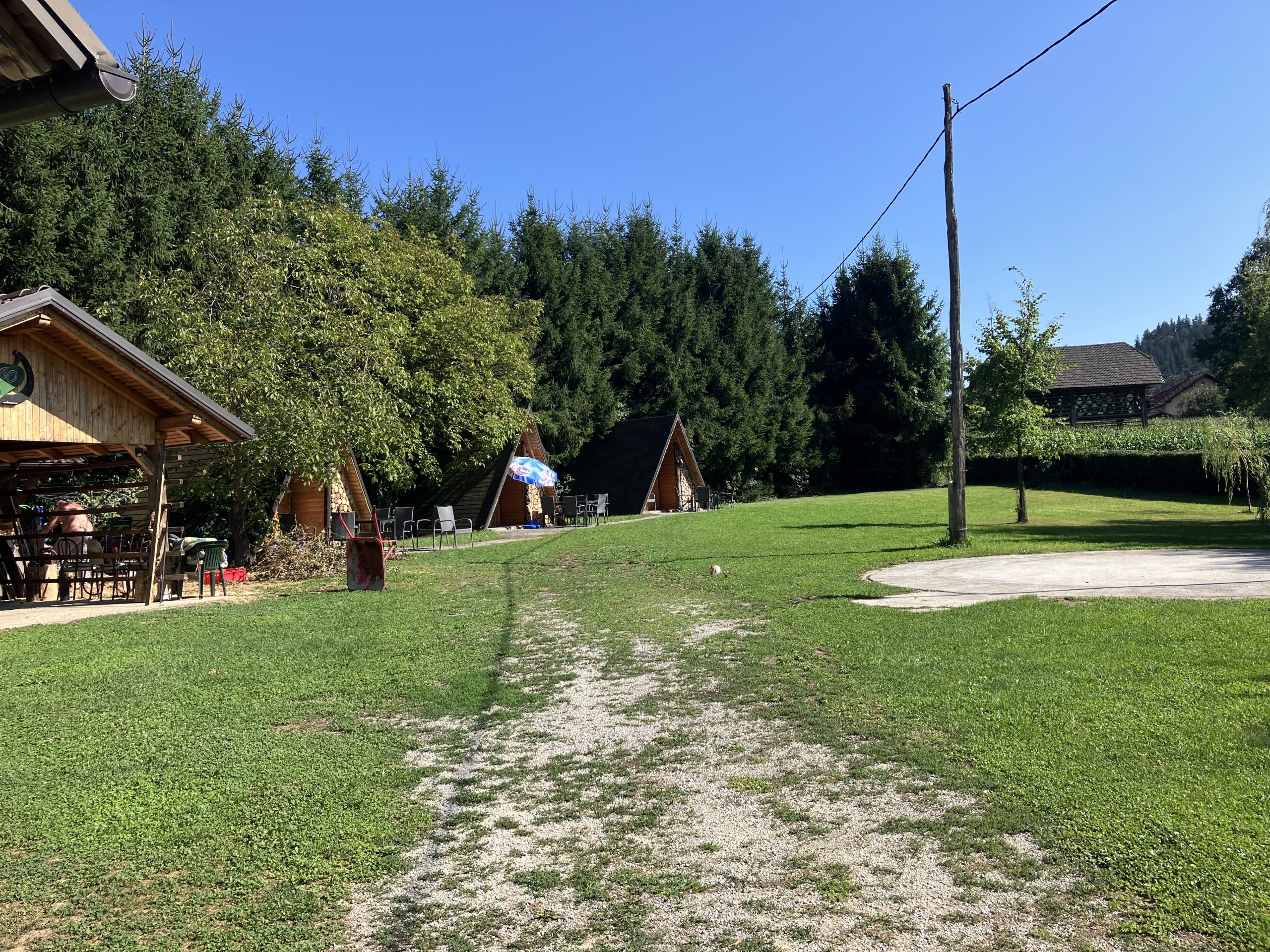 Volgens de navigatie kom ik iets na drie uur aan op een kampeerterrein bij een boer. Helaas, 10 minuten voor aankomst is de weg afgesloten en moet ik omrijden. Dat kost een half uur extra want ik moet nu eerst even om de berg heen om van de andere kant wel op de boerderij aan te komen.
